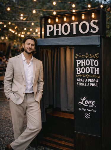 Inspired by classic photo parlors and old-world charm, this enclosed, handcrafted booth adds a warm, nostalgic touch to any celebration. With marquee-style lighting and a timeless design, it feels like stepping into a beautiful memory.